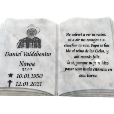 Lápida libro mármol 30×20 cm, grabado